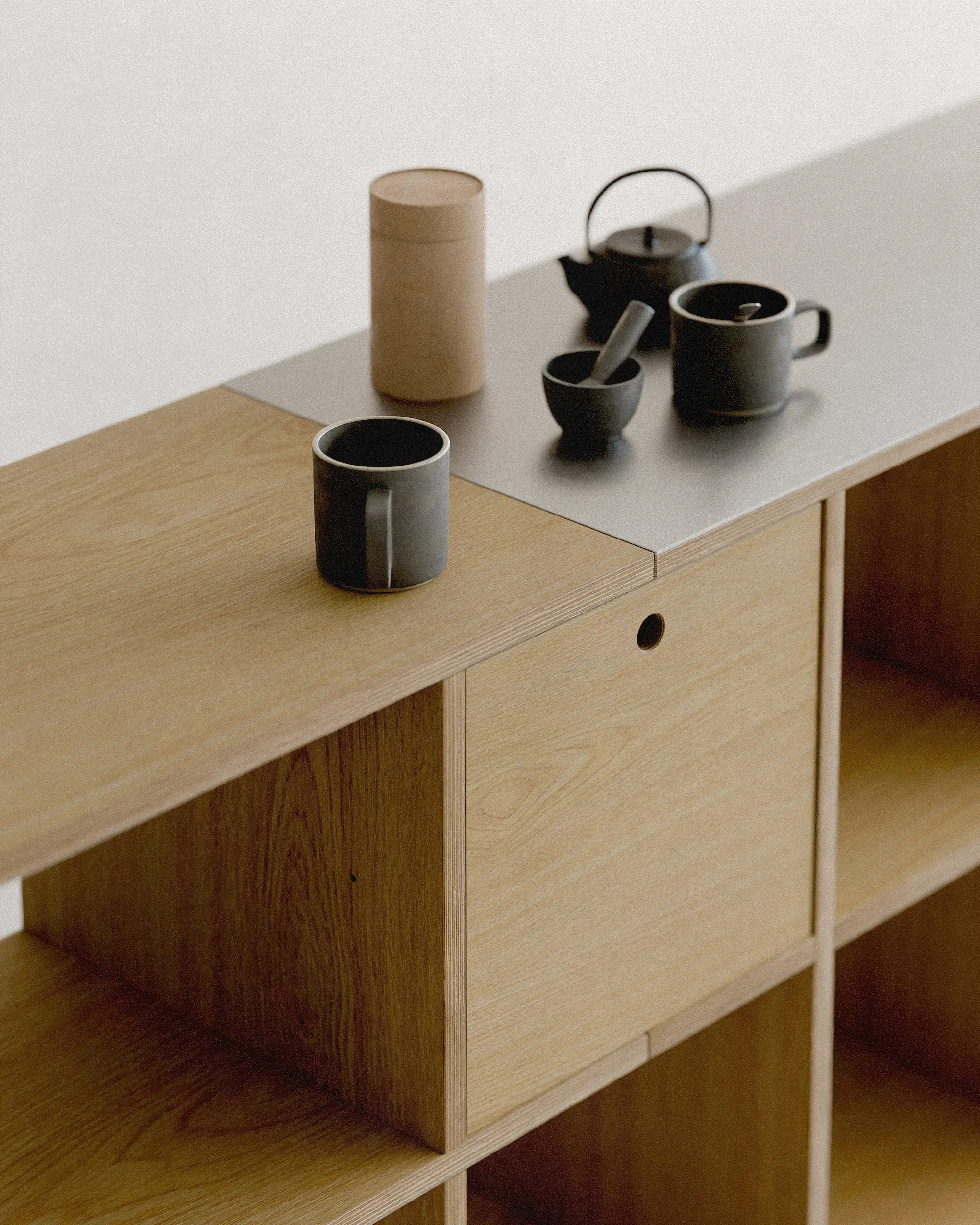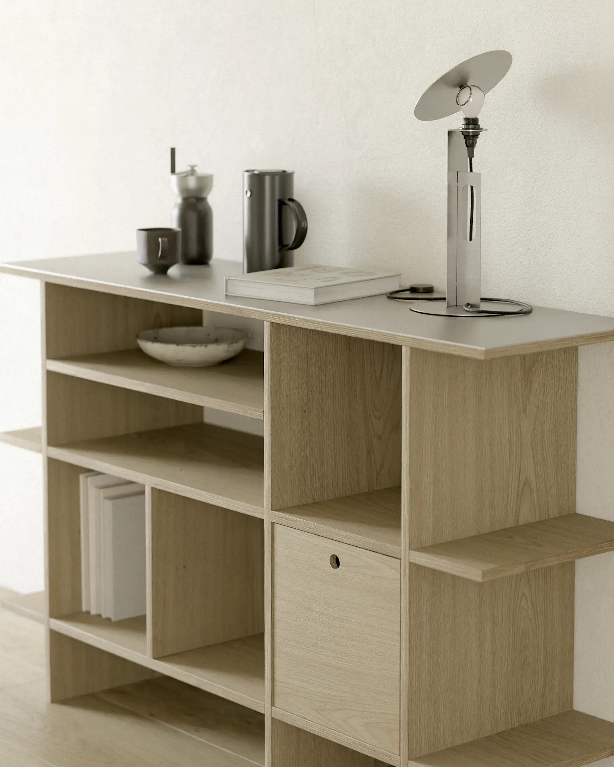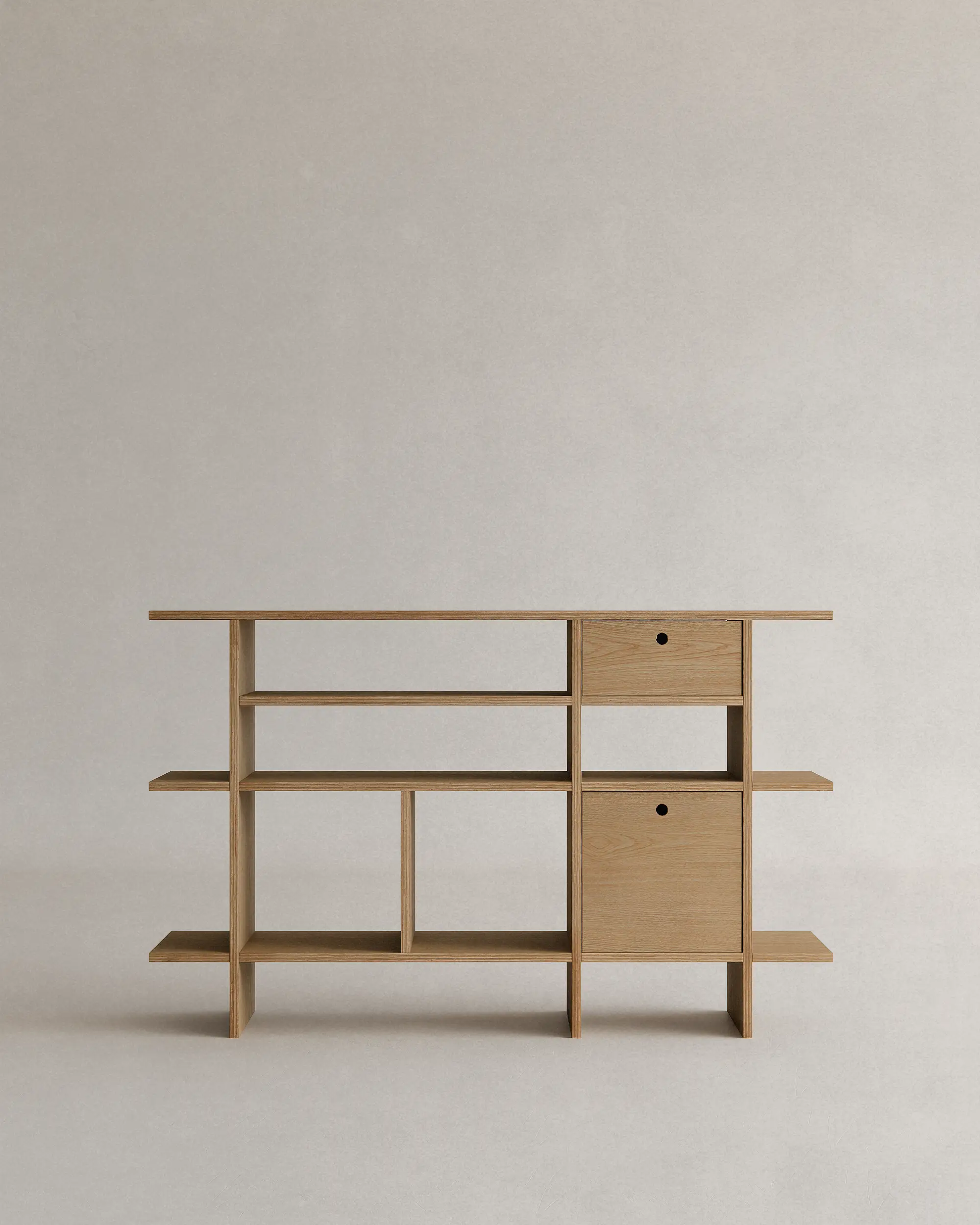 불필요한 요소를 과감히 덜어내고, 선과 칸의 비율과 사용성에 집중했습니다. 에센셜 쉘프는 사용자에 맞춰 유연하게 확장되는 미니멀한 구조로, 시간이 지나도 변함없이 함께하는 가구입니다.