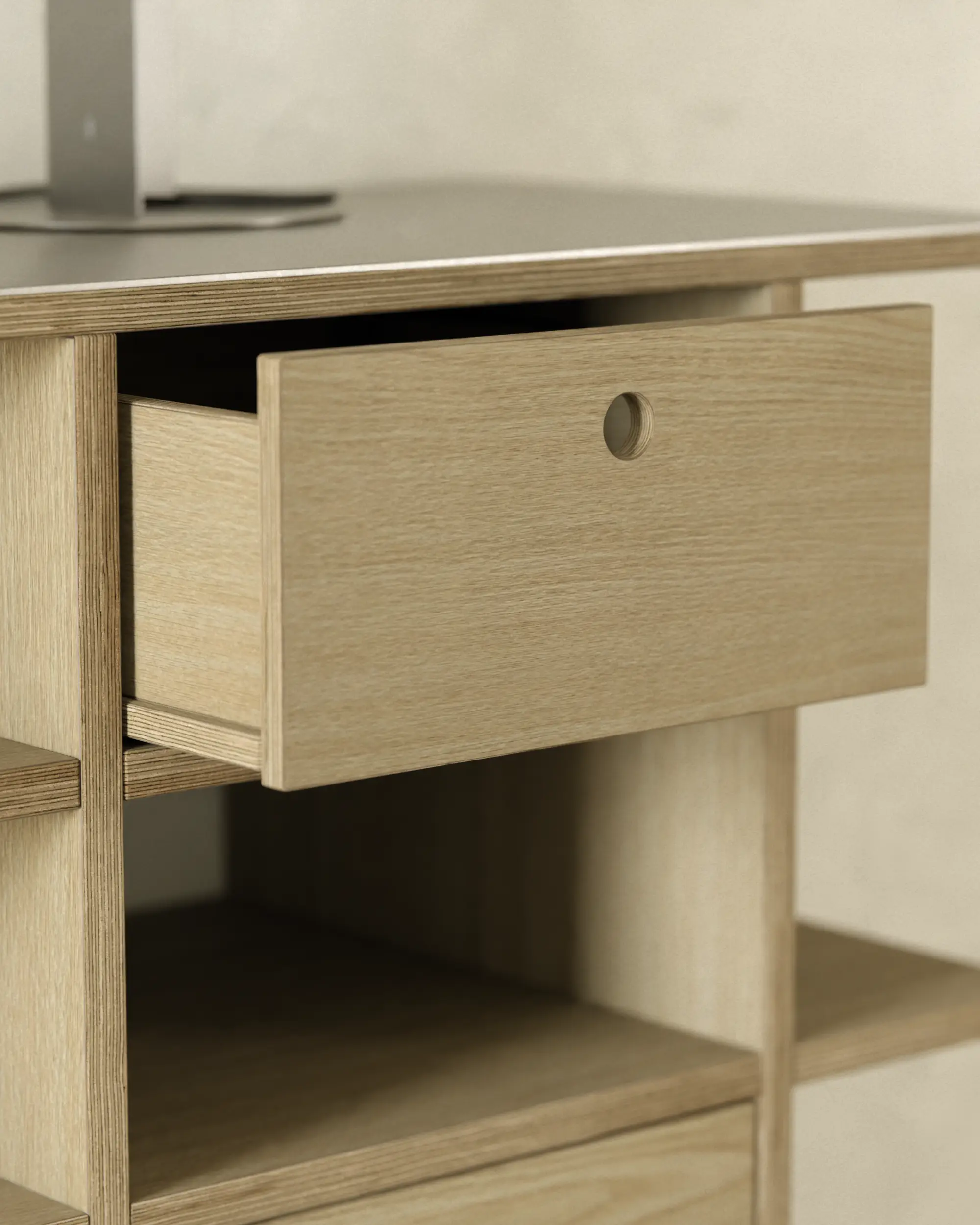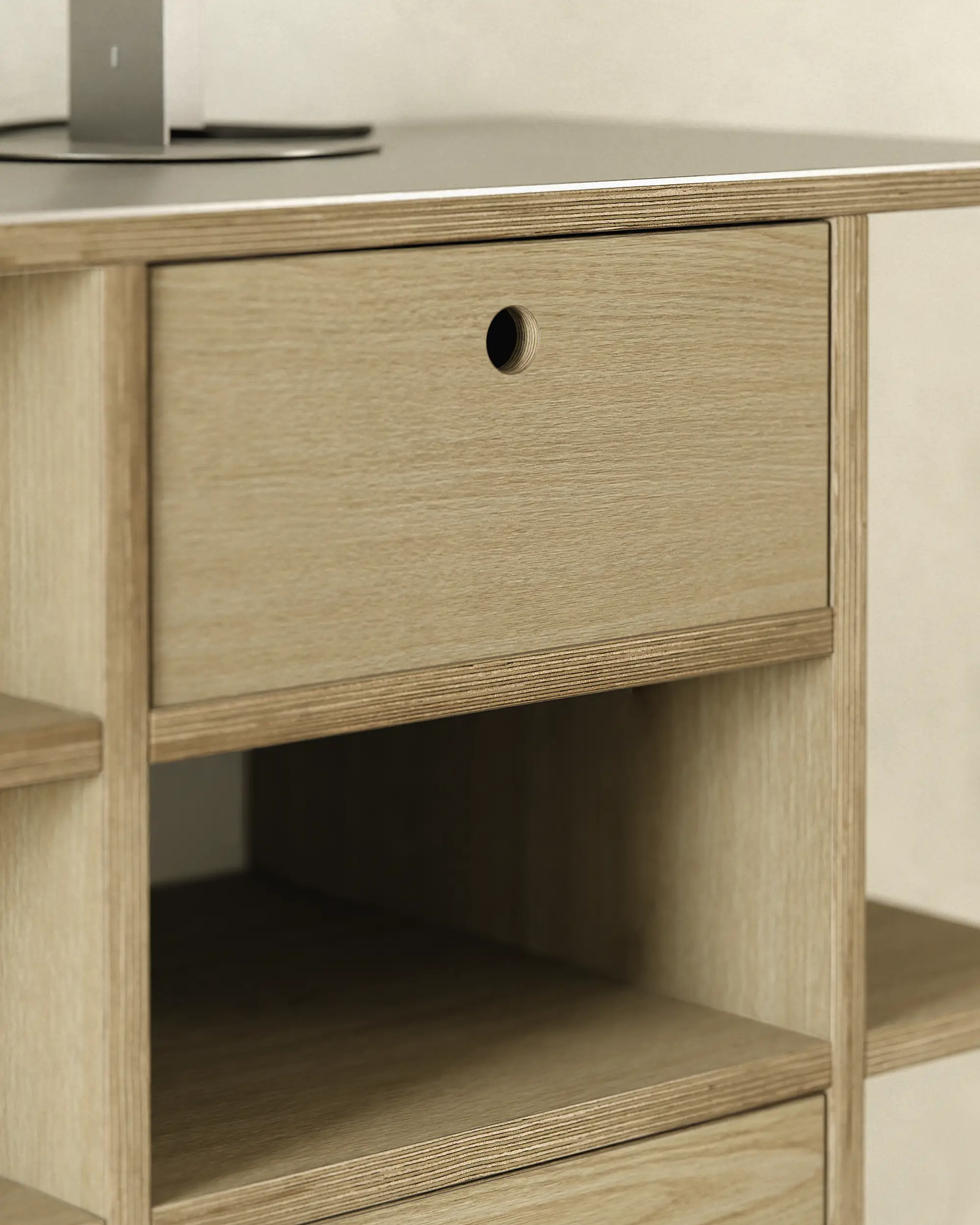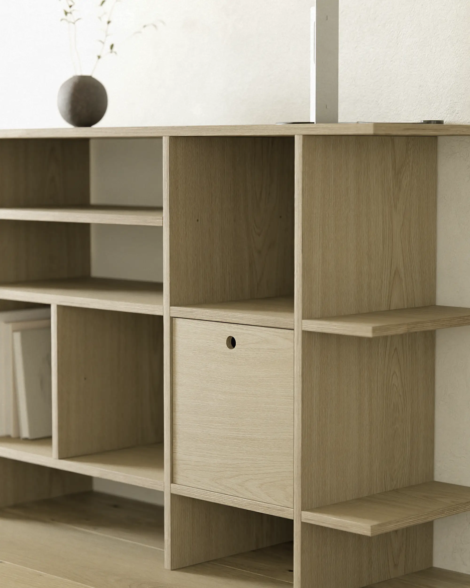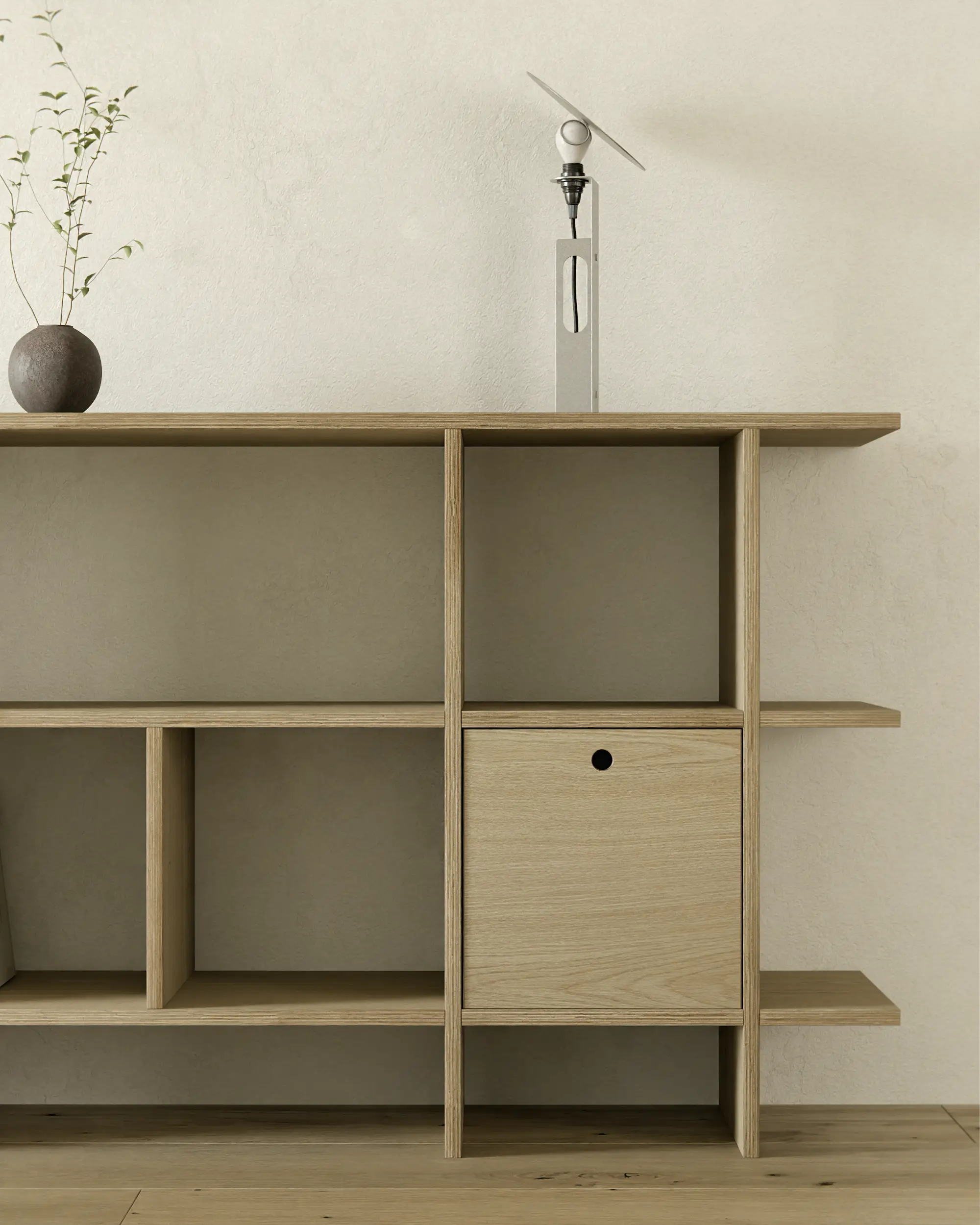 불필요한 요소를 과감히 덜어내고, 선과 칸의 비율과 사용성에 집중했습니다. 에센셜 쉘프는 사용자에 맞춰 유연하게 확장되는 미니멀한 구조로, 시간이 지나도 변함없이 함께하는 가구입니다.