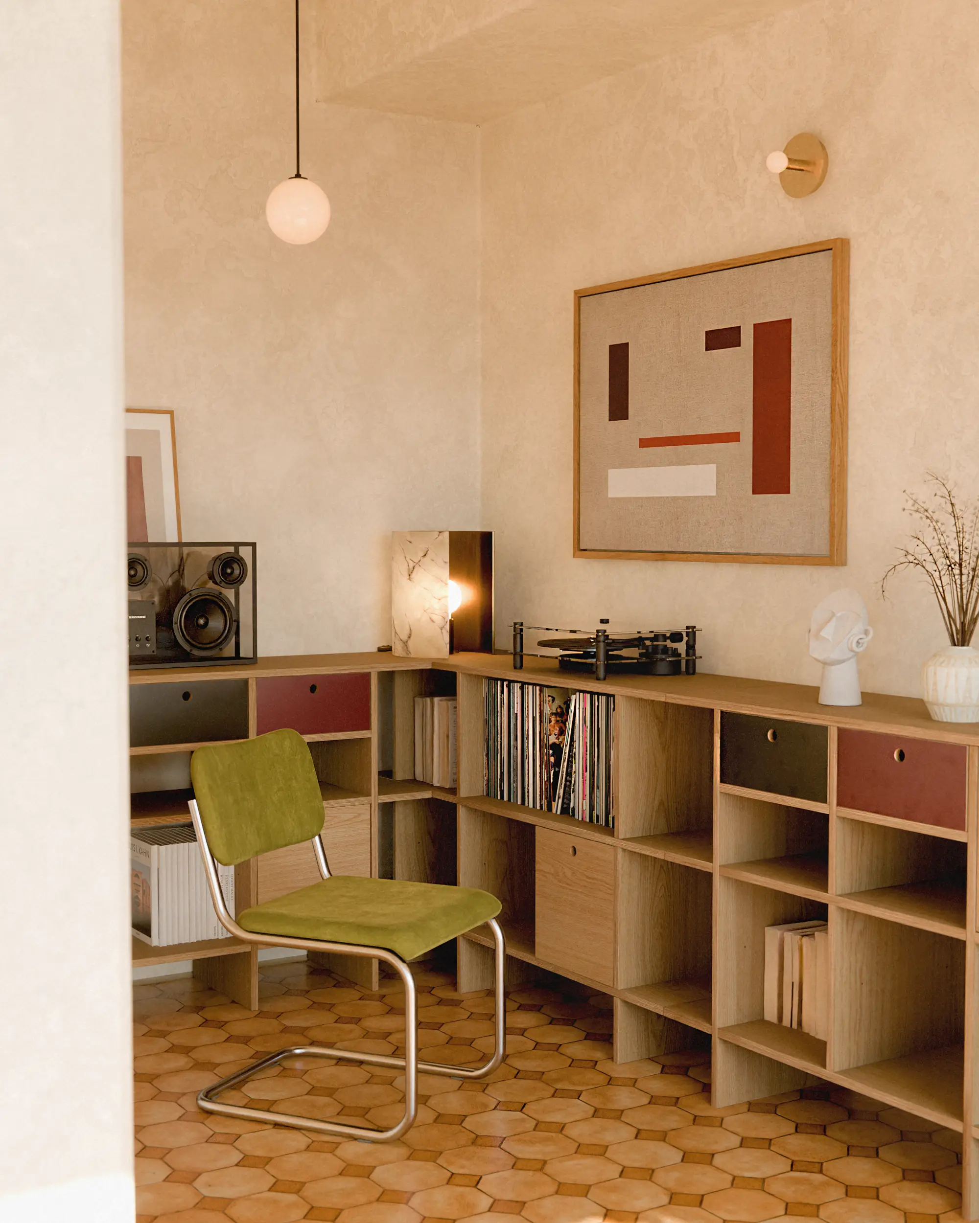 에센셜 쉘프는 자연스럽게 이어지는 상판과 좌우 대칭 구조, 균형 잡힌 칸의 비례를 바탕으로 다양한 배치가 가능합니다. 백-투-백 배치는 물론 코너에 맞춘 L자형 배치까지, 공간과 용도에 따라 유연하게 확장됩니다.