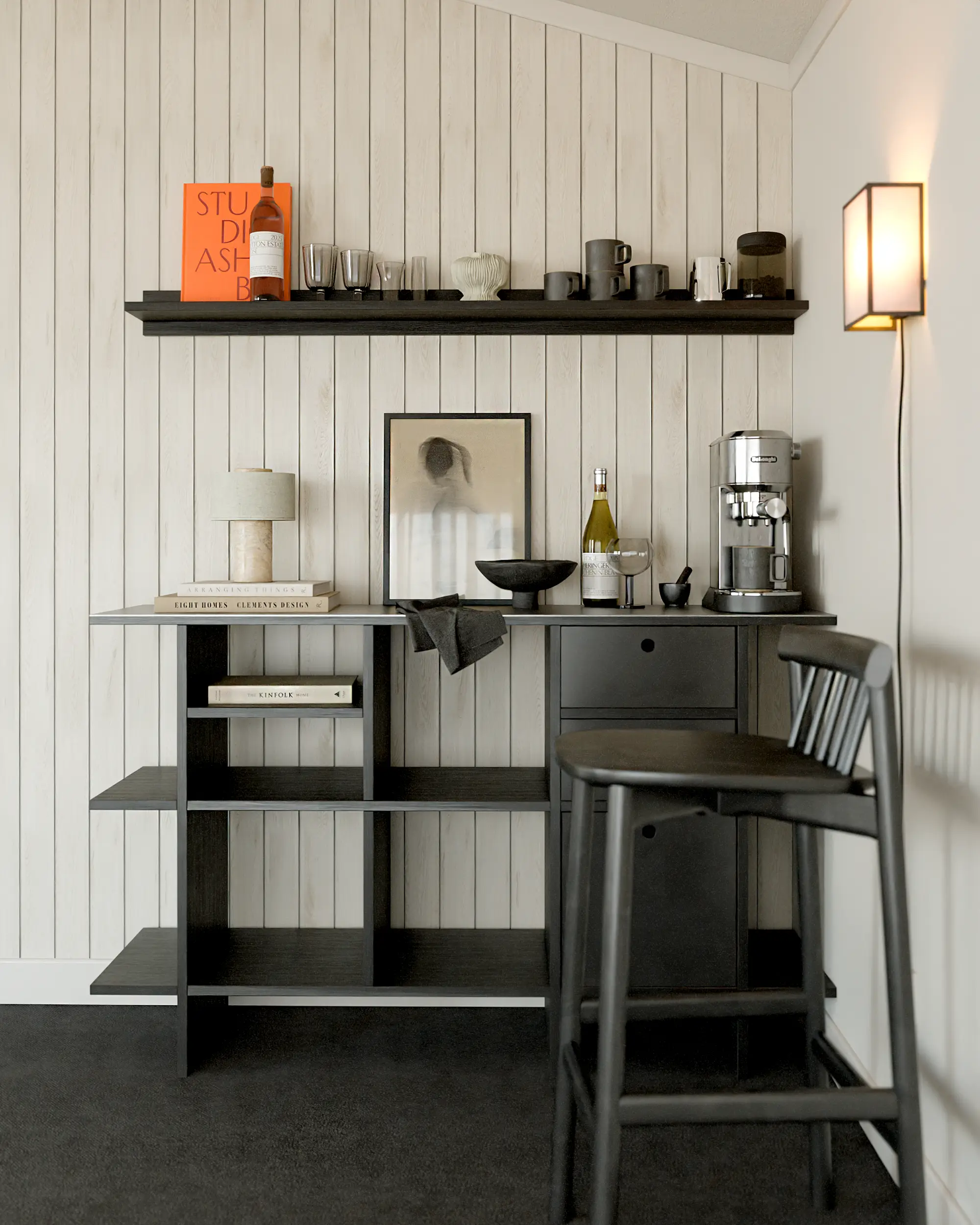 에센셜 쉘프는 높이 900mm, 깊이 400mm로 다양한 라이프스타일에 자연스럽게 어우러지는 균형 잡힌 비율을 갖추고 있습니다. 간단한 준비와 머무름이 이루어지는 공간으로도 부담 없이 사용할 수 있어, 커피 한 잔과 같은 일상 속 작은 루틴을 담아내기에 적합합니다.