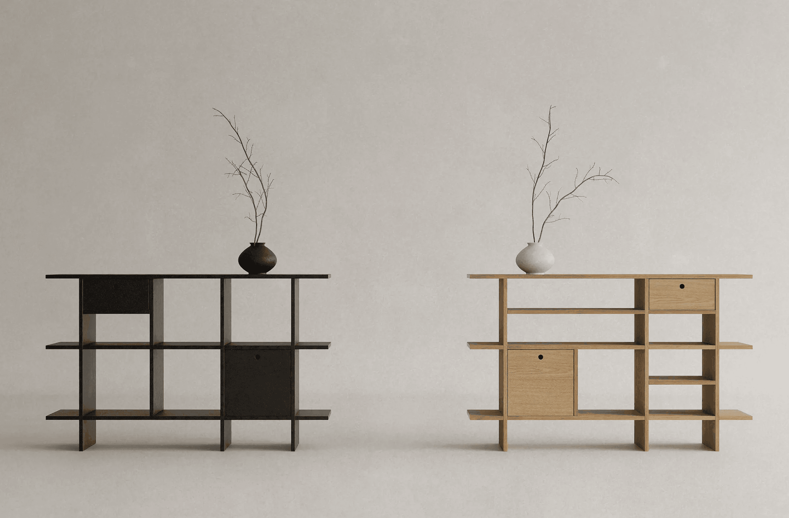 동양의 미니멀리즘과 북유럽의 기능주의를 담아, 에센셜 쉘프는 본질에 집중해 디자인되었습니다. 불필요한 요소를 덜어낸 구조는 사용자에 맞춰 유연하게 변화하며, 시간과 함께 더욱 자연스럽게 완성됩니다.