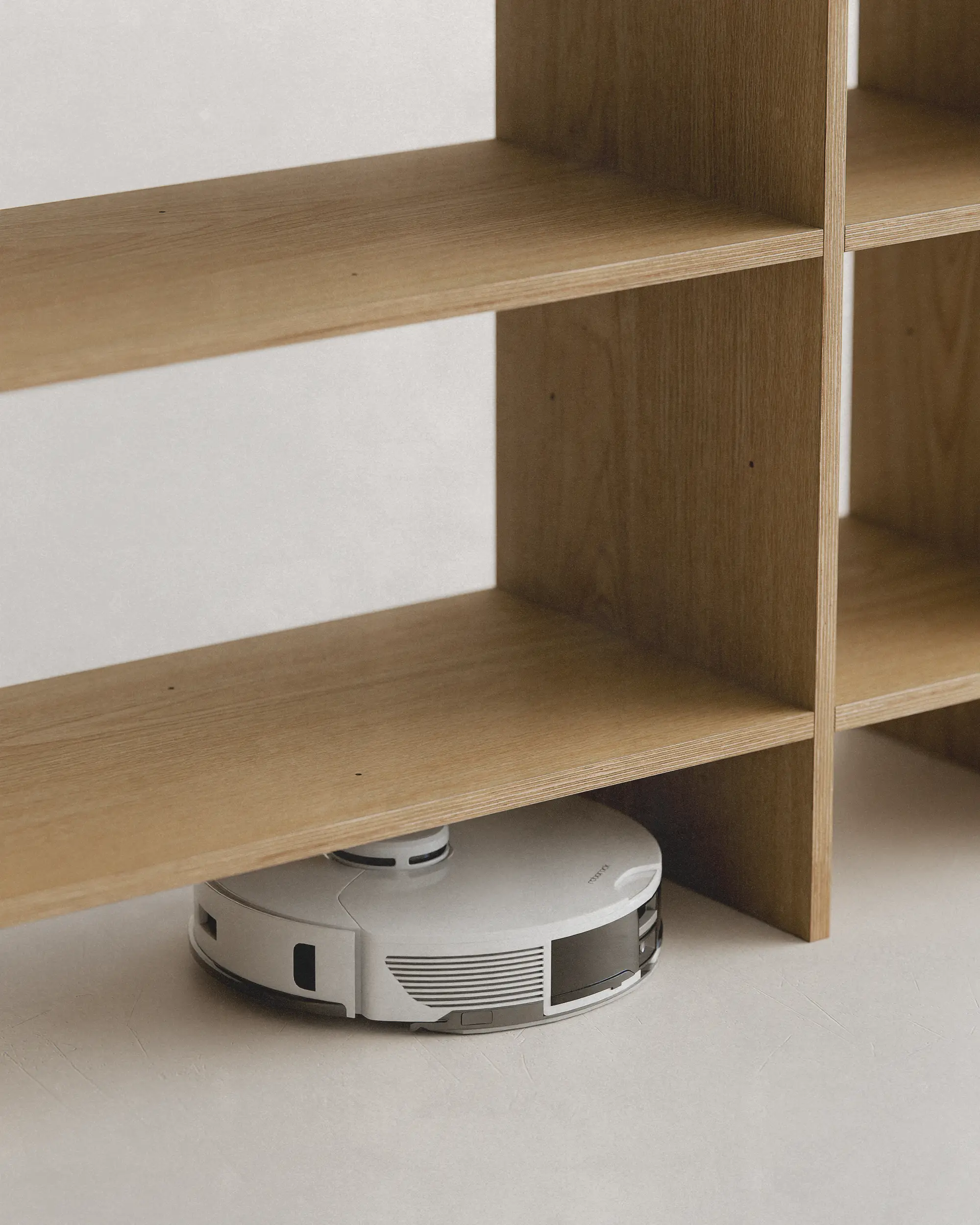 에센셜 쉘프 다리(하단부) 공간은 16cm의 높이로 제작되어 히든 수납 공간으로도 사용 가능하며 청소 도구 통행이 쉽고 로봇 청소기 또한 지나 다닐 수 있어 먼지, 오염물 등으로 부터 공간을 쾌적하게 관리 할 수 있습니다.